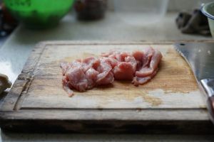 这份菜4~5人吃一餐。第一步瘦肉洗净切薄片