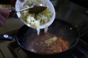 起锅烧油,下葱姜蒜爆香
