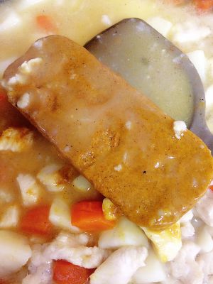 锅煮开后,关火【切记】!放入咖喱块,直至化掉!