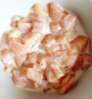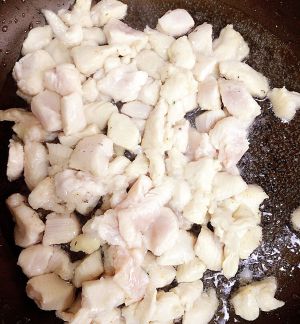 鸡胸肉切丁,放点水淀粉,少许盐腌制