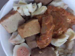 买的各种火锅丸,开水烫一下然后改刀,备用。