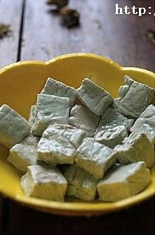 买来臭豆腐 洗干净,一块切成两块或更小,容易入味,较少烤的时间