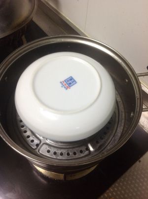 盖上盘子,盖锅盖入锅蒸一小时,关火,焖着吧,晚饭加热再吃更入味
