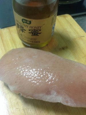 五花肉肉皮用吸油纸吸走表面油和水,趁热抹上蜂蜜。