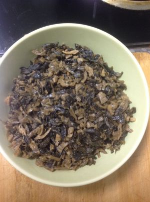 梅菜要提前泡四个小时后洗干净挤掉水份切碎备用。锅里炸五花肉的油刚好可以拿来炒梅菜