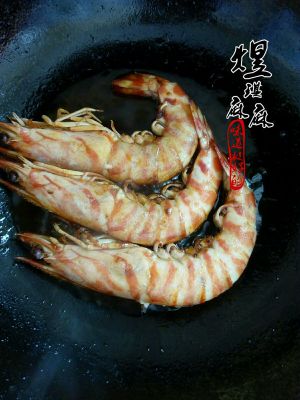 锅中倒比平常炒菜多一点的油,将处理好的虾放进去,先煎至一面变色