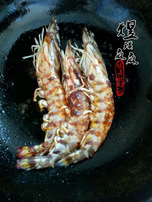将煎至好的大虾放进去翻炒均匀大火收汁
