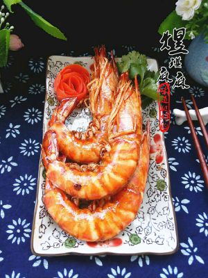 热锅放油(我用的不粘锅),油热后放少许葱姜,炒香后放番茄酱,炒香后(先调小火)把虾一个个挑出来放锅里(之前淹虾的料就不要了),调中火,往锅里少放些水,不要沫过虾。盖上锅盖,焖一分钟后把虾翻一下身。再焖一分钟后就把锅盖掀开,观察收汁的程度和虾的颜色,根据个人的口味再少放点盐。