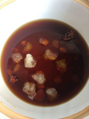 加盐、一个小红茶包在锅内同煮,大火煮半小时后转中小火煮一个半小时,煮的过程中要自己尝尝汤汁的味道,盐糖味调至喜欢的口感略淡一,炖到最后收汤汁味道会变浓
