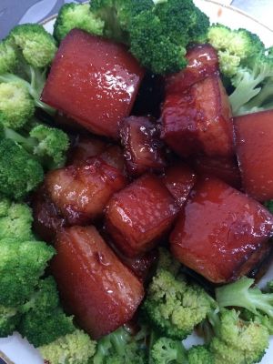 装盘码上西兰花即可。(西兰花要摘成小块,锅中小水,大火烧开,下入西兰花,焯透就好。我是趁着锅中在炖肉的空档把西兰花焯一下)