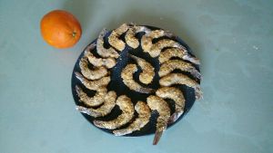 大虾挑去虾线,去头,剥去虾壳仅留虾尾,加入几滴柠檬汁和食盐,白胡椒粉腌10分钟左右后,用吸水纸吸干备用。