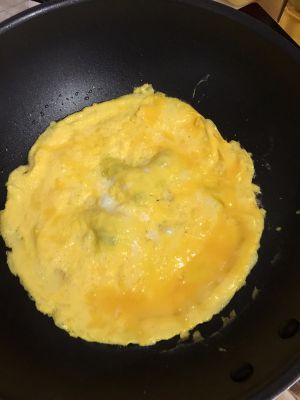3-锅内倒油,炒鸡蛋,鸡蛋成金黄,入盘