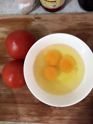 准备工作做好,西红柿切小块,蒜瓣葱花切粗末,柴鸡蛋打好备用
