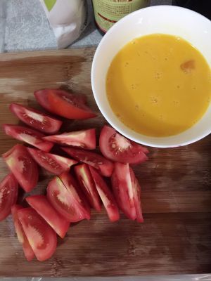西红柿切小块(不要太大不好吃)鸡蛋打散备用