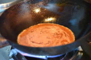 锅中炸排骨的油全部倒出,把刚才调的汁倒入锅中,大火烧开。