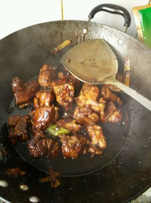 在按正常烧菜步骤烧排骨,记得放糖,根据个人口味加醋,收汁起锅!即可
