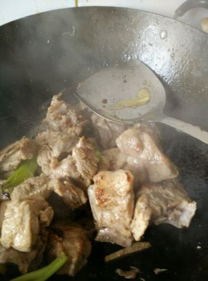 排骨洗净,生姜切片,油少许加热,下姜煸香