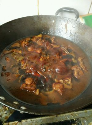 放入酱油,葱段,冰糖,料酒,红辣椒,醋(放一点就可以了,后面出锅的时候再放,不然都混发掉了)姜,八角大火煮,煮开后转小火炖
