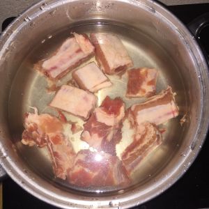 排骨买回来,洗干净,用水煮一下,放点料酒,去腥去血水。