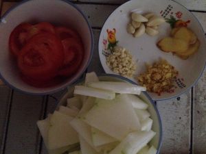 高压锅内舀出少量汤备用,加入冬瓜高压锅压1分钟,普通锅10分钟起锅。