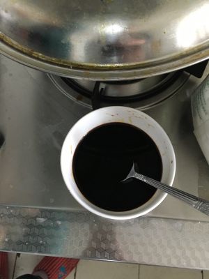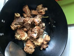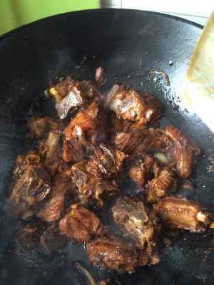 放油少量 冰糖少量四颗带冰糖融化糊状 就可以放入抄好的排骨