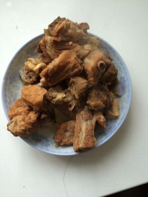 煮好的排骨用一勺老抽,两勺生抽,一勺料酒,两勺醋腌30min