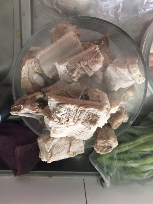 排骨焯水捞出,入压力锅炖熟。我喜欢腐竹所以放了点。