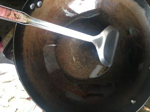 锅里倒油( 比平时炒菜油稍微多倒一点)