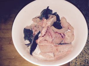 龙利鱼切大块,一整片的鱼我就横切了几刀,大概三厘米宽的条,用盐,料酒、胡椒,花椒粉,生抽,鸡蛋清,淀粉腌制。