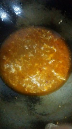 炒香火锅底料,葱姜蒜爆锅、再加入郫县豆瓣酱,炒出红油和香味、加入清水煮沸