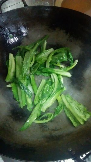 锅里加油把洗好的卷心菜炒熟,倒入碗里备用。