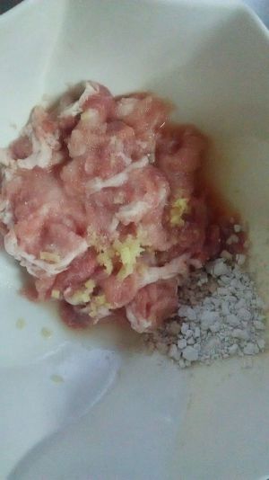肉片加姜粒,红苕粉,味精,盐搅拌均匀备用