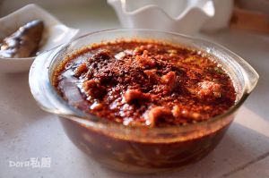 起油锅,倒入平时炒菜的2到3倍的油量。油温2成热放入干辣椒和蒜粒,爆炒下放入老干妈豆瓣酱,关火炒一下。