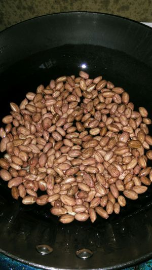 当一丁点油,将花生小火炒熟