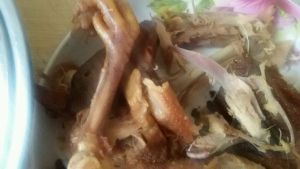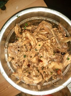 一个小时左右就差不多了,捞出来凉一会儿,带上一次性手套把鸡整理出来,撕成小块,(小块是为了比较容易进味)调料依个人爱好吧!就这样手撕鸡就出来咯。。。