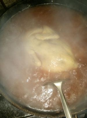第一步,多的就不说了,直接开始吧,白水,鸡精,盐巴,酱味卤王,乙基麦芽酚,都适量,我这就是在小火烹。