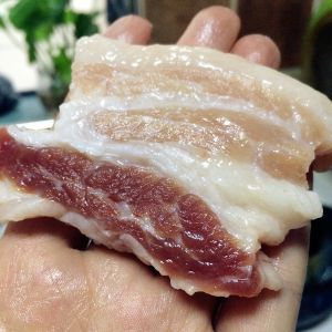 五花肉,选层叠的。不要断层,洗干净,冰箱稍稍冻一下,切起来不打滑,而且可以切很薄