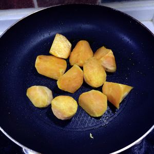 腌制排骨的时间快到的时候开始准备红薯,去皮洗净,切成条状(如图,可以根据个人喜好切自己需要的形状)