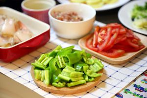最后加入青红椒,放少许鸡粉提味,炒匀出锅。