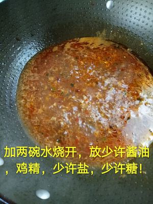 加一勺辣椒面,增加辣味,同时颜色更加红亮