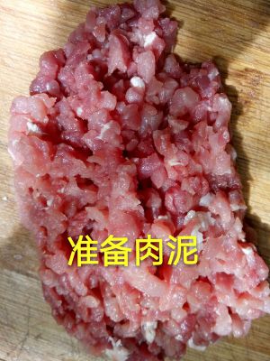 准备一小块牛肉,去掉筋膜,切成小块,然后剁成末,不用剁成肉馅那样细