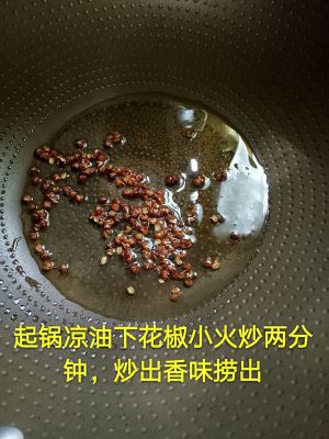 起锅凉油,下花椒小火炒两分钟,炒出香味捞出