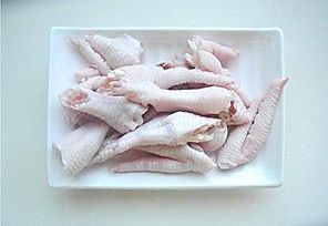 鸡爪洗净,剪掉指甲。鸡爪剁成小段,好入味
