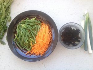胡萝卜,青椒,木耳切丝(木耳提前泡好,焯水)