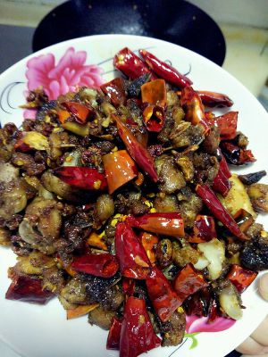 鸡熟了后 把蒜米 姜下锅炒 然后放花椒和干辣椒 直有呛鼻的辣味出来