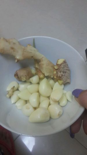 煮好的辣椒滤干水分,和下图都姜蒜,磨成泥