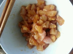 开始准备的酱油,醋,淀粉,糖,调成料,蒜末用一半