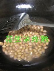 花生米洗净后,控净水分,冷油下锅炸熟捞出。
