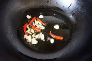 再次置油,姜蒜,辣椒,花椒凉油下锅爆香。