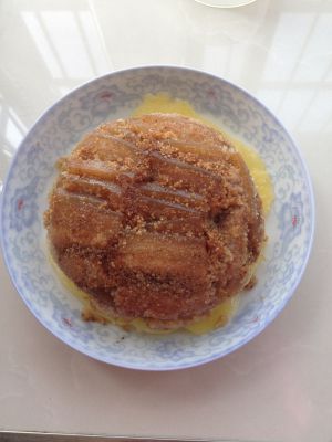 肉皮朝下,整齐码入碗中,盖上土豆片!蒸锅加水(多加水),大火10分钟后小火蒸1小时!